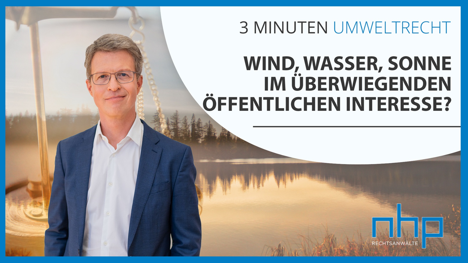 Erneuerbare Energie aus Wind, Wasser, Sonne kann daran scheitern, dass die von den Behörden durchzuführende Interessenabwägung gegen das Projekt ausgeht. Was ist wichtiger? Sauberer Strom oder der Schutz des Landschaftsbilds? In diesem „3 Minuten Umweltrecht“ Video stellt Martin Niederhuber die Interessenabwägung als „Show-down“ zum Schluss eines behördlichen Projektbewilligungsverfahrens vor und erklärt, wie man das im Dienste der dringend gebotenen Energiewende reformieren muss.