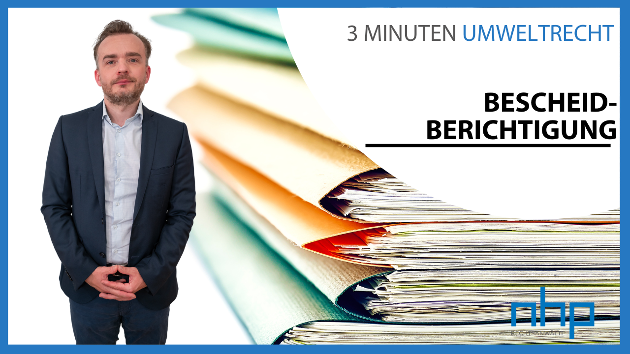 Die Bescheidberichtigung ist im AVG (Allgemeines Verwaltungsverfahrensgesetz) geregelt. Im neuen Video von „3 Minuten Umweltrecht“ erklärt NHP-Anwalt David Suchanek wann und unter welchen Bedingungen Bescheide geändert werden dürfen und welche Grenzen es dabei gibt.