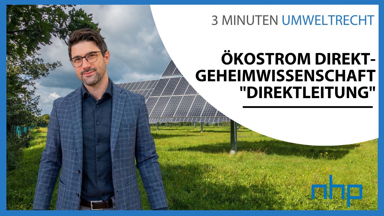 Die PV-Anlage am Dach, das Windrad im Vorgarten. Die Direktversorgung mit Strom ist ein zentrales Thema für die Energieversorgung. Aber wie kommt der Strom auch zum Abnehmer? Das erklärt NHP-Partner Florian Stangl in einem neuen Video von „3 Minuten Umweltrecht“.
