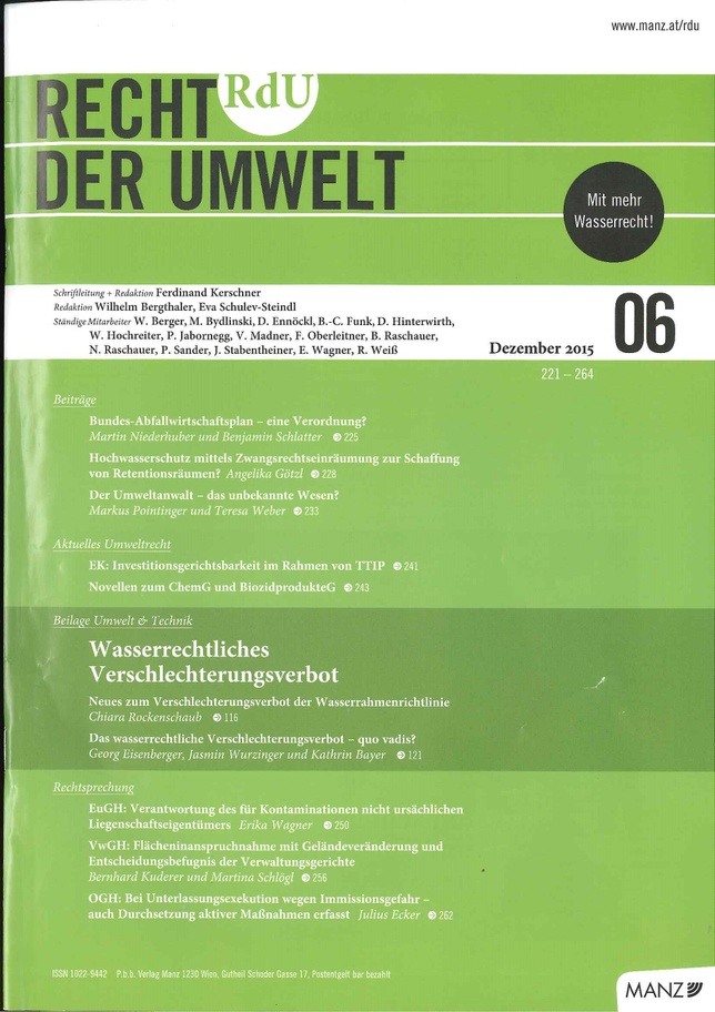Die Frage nach der rechtlichen Verbindlichkeit des Bundes-Abfallwirtschaftsplans ist so alt wie der Plan selbst. Trotz der hohen praktischen Relevanz ist bis heute nach wie vor nicht geklärt, ob dem nunmehrigen BAWP 2011 – zumindest hinsichtlich einzelner Kapitel, wie zB der Festlegung von Behandlungsgrundsätzen –die Rechtsqualität einer Verordnung zukommt.