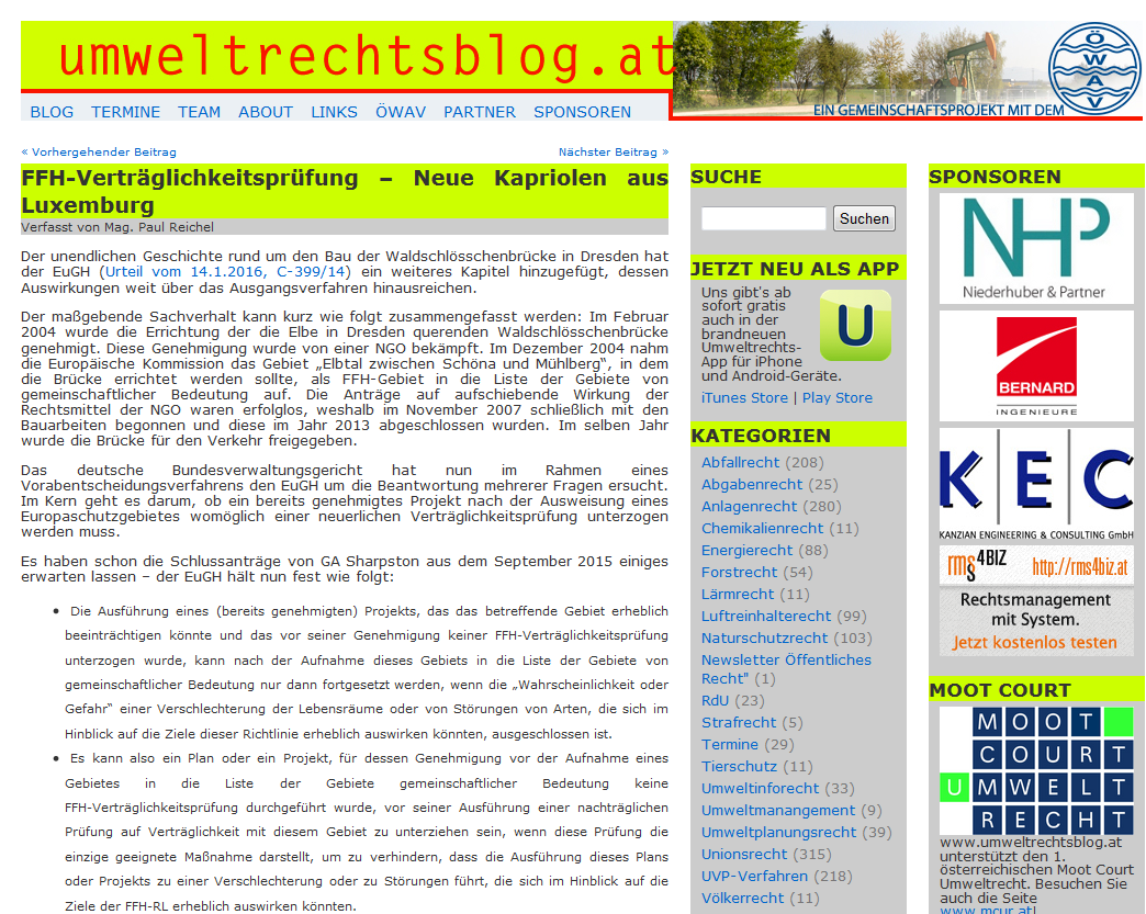 Paul Reichel schreibt auf www.umweltrechtsblog.at