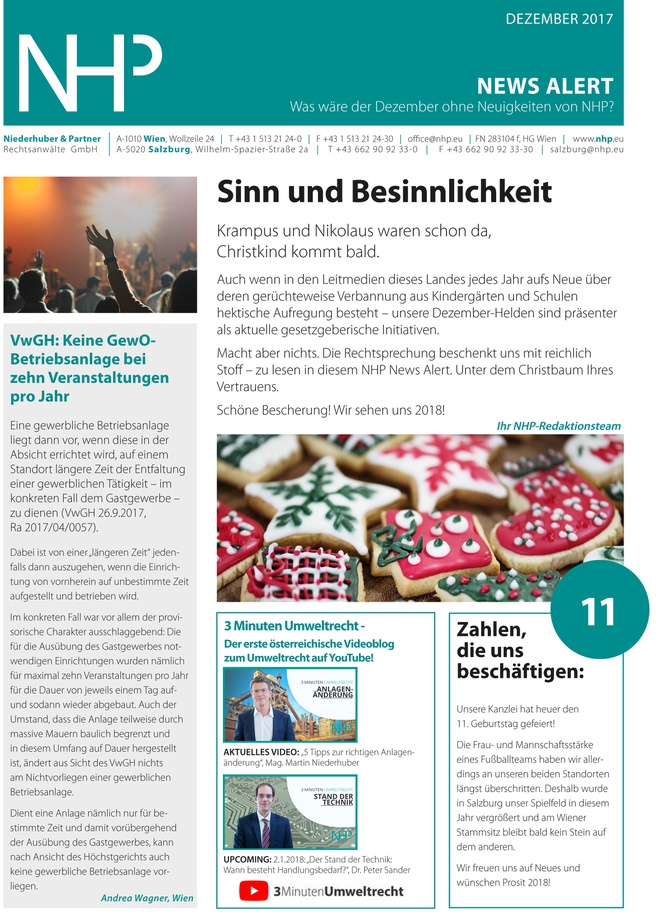 Der NHP News Alert Dezember 2017 ist mit folgenden Themen erschienen: