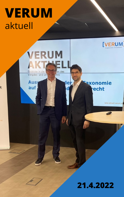 Das erste fachübergreifende Format „VERUM“ – lieferte am 21.4.2022 den Online-Teilnehmern Einblicke in die Neuerungen des Vergabe- und Umweltrechts zum Top-Thema: EU-Taxonomie.