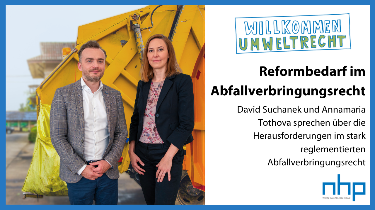 Abfallregelungen auf dem Prüfstand! Entdeckt in unserer neuesten "Willkommen Umweltrecht"-Episode mit NHP Partner David Suchanek und Annamaria Tothova von Eversheds Sutherland alle Details über dringenden Reformbedarf, Digitalisierung und angestrebte Harmonisierung in der Abfallverbringung. Erfahrt, warum eine Überarbeitung unverzichtbar ist und wie geplante Neuerungen die Abfallverbringung optimieren sollen.